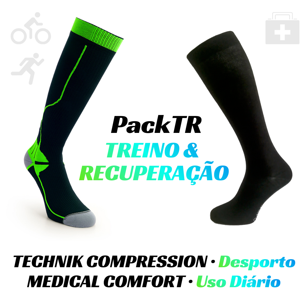 PACK with DARA TECHNIK COMPRESSION sports socks and DARA MEDICAL COMFORT recovery socks and a 23% discount. Quality made in Portugal.
